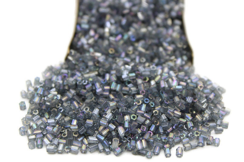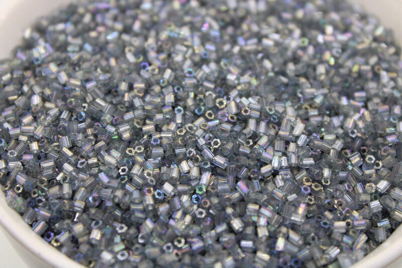 11/0 2 Cut Seed Beads, Grey Rainbow Luster, 20/50/100 Grams Packs, Embroidery making, Economical Jewelry Making, Indian Hex Cut, Hexagon Beads, 171/28.