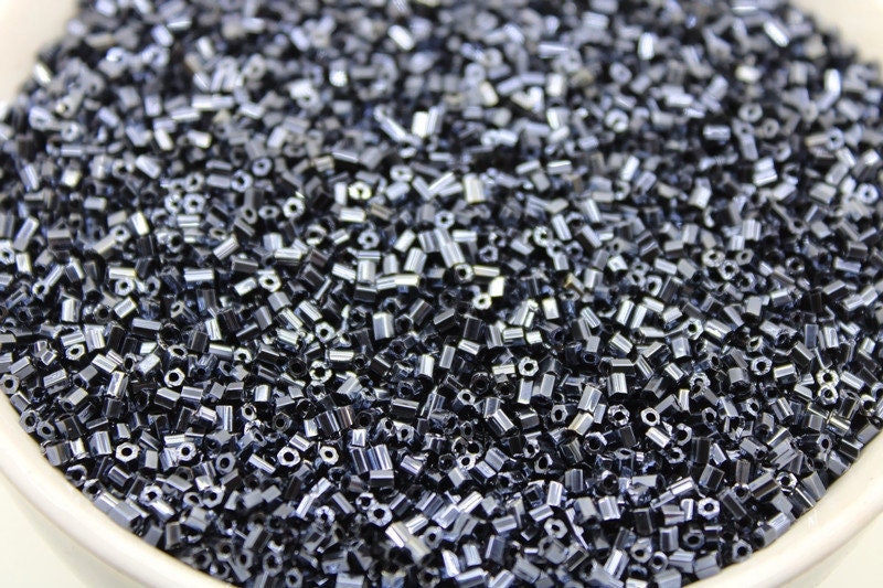 11/0 2 Cut Seed Beads, Gunmetal Luster, 20/50/100 Grams Packs, Embroidery making, Economical Jewelry Making, Indian Hex Cut, Hexagon Beads, 129/19.