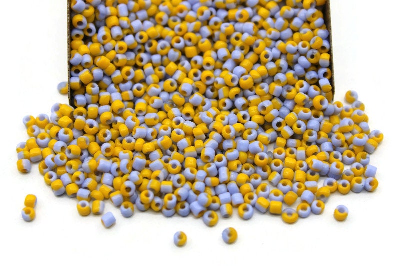 11/0 Marigold-Tropical Blue Striped Seed Beads, 20/50/100 Grams Packs, Embroidery Beads, Jewelry Beads, Craft Supply Beads, Indian Seed Beads, 515/30.