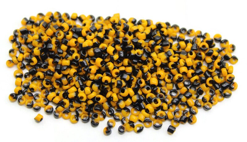 11/0 Yellow-Black Striped Seed Beads, 20/50/100 Grams Packs, Embroidery Beads, Jewelry Beads, Craft Supply, Rondelle Beads, Indian Seed Beads, 512/20.