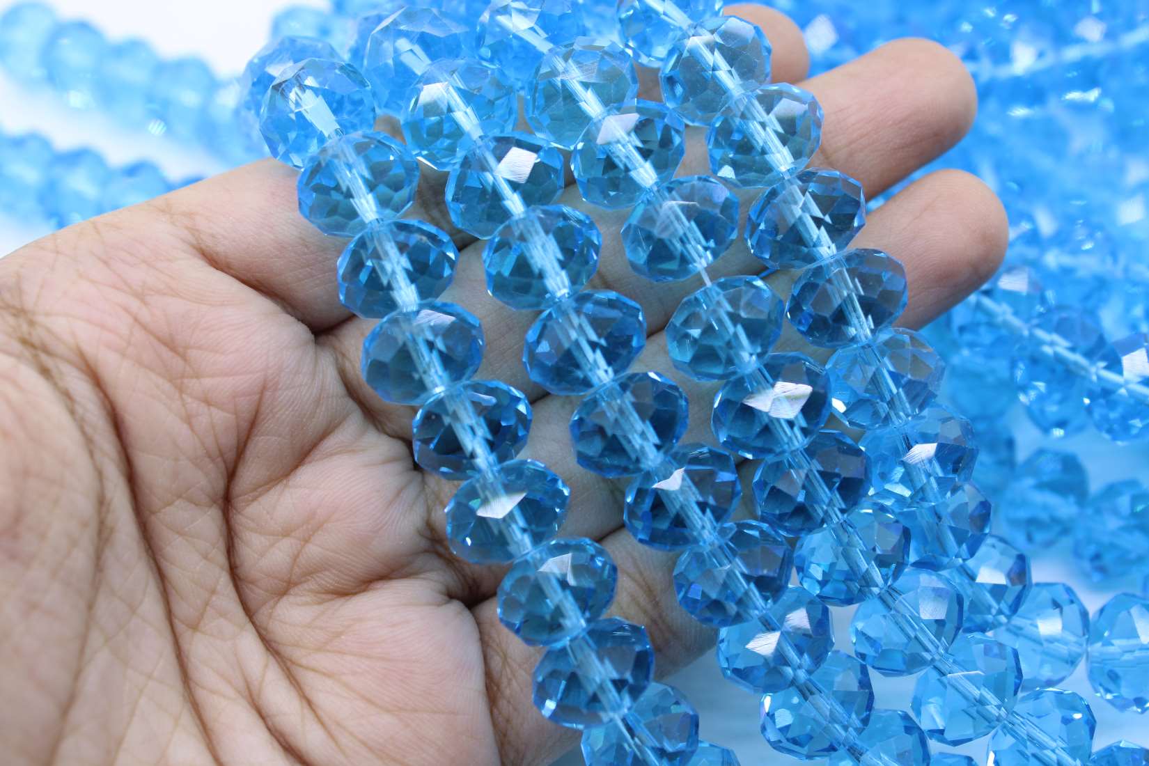 12mm Czech Rondelle Crystal Beads, Blue Topaz Transparent, 1 String, Superior quality beads, Jewelry supply