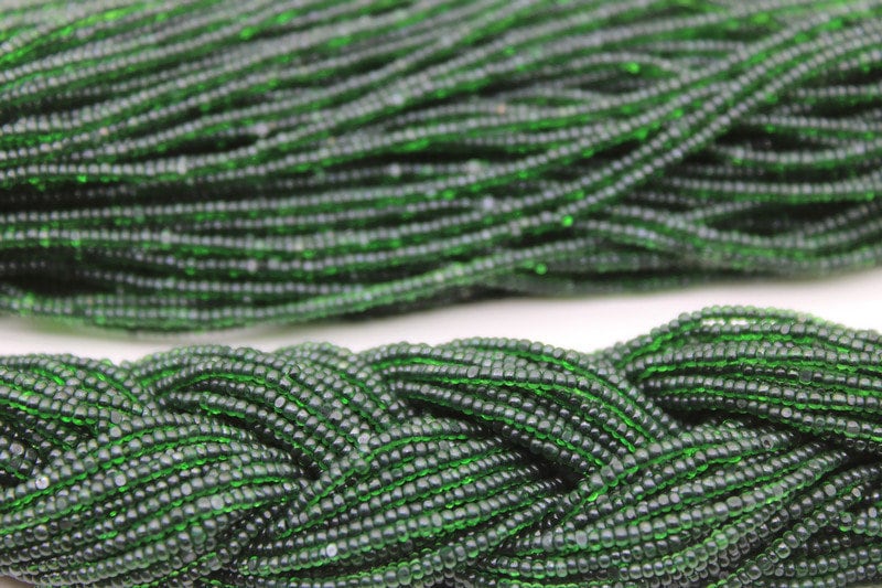 13/0 Charlotte Cut Beads, Tr. Emerald Green, 1/3/5 Hanks, Preciosa Ornella Beads, Embroidery Beads, Craft Supply, Jewelry Findings.