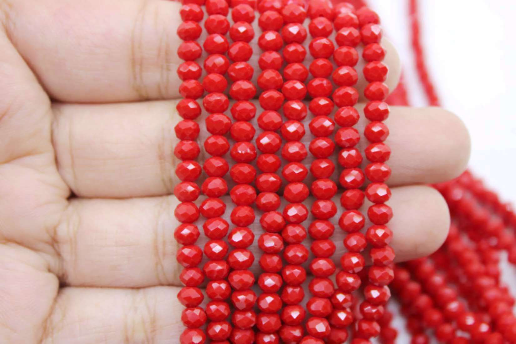 4mm Czech Rondelle Crystal Beads, Light Red Opaque , 1 Strand, Superior quality beads, jewelry supply.