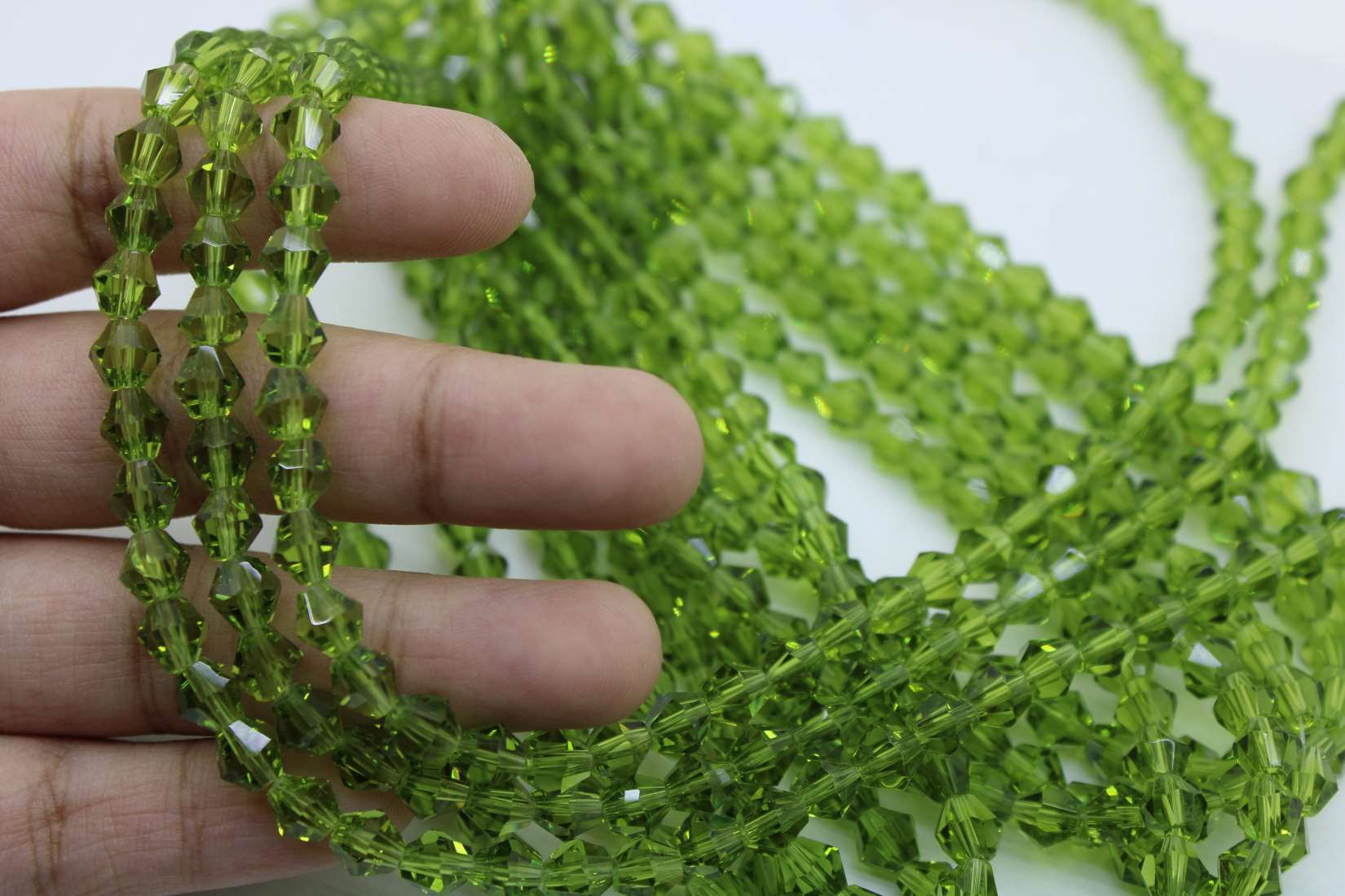 6mm Czech Bicone Crystal Beads, Olive Green, 1 String, Superior quality beads.