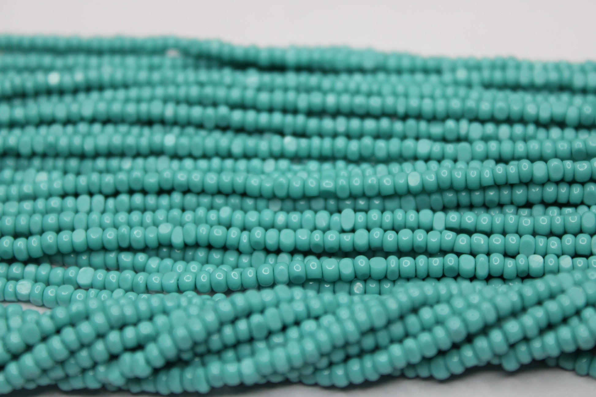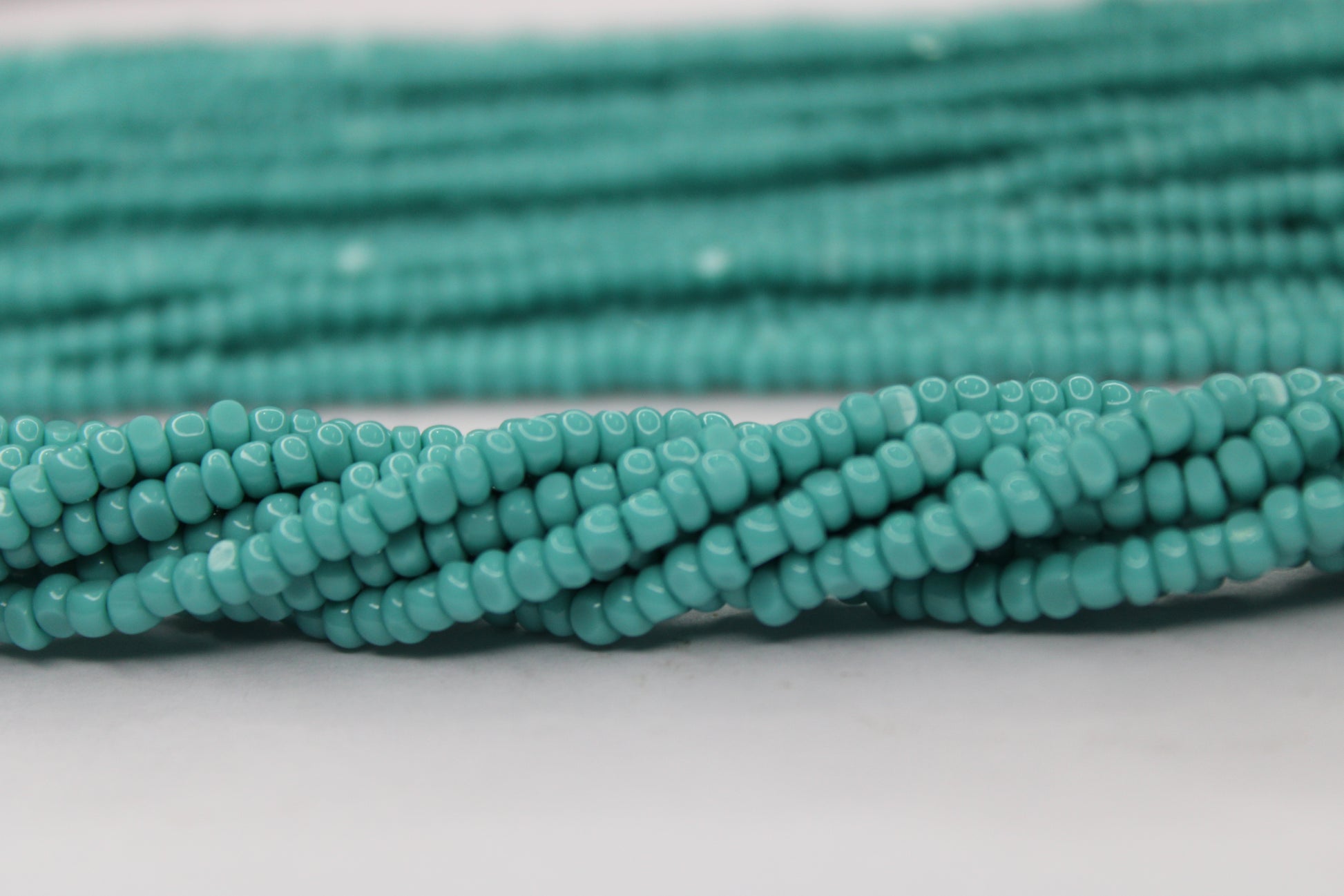 8/0 Charlotte True Cut Beads, Op. Turquoise Blue (2 Facets) 1 Strand, Craft Supplies, Jewelry making, Embroidery materials, Vintage beads, 63130