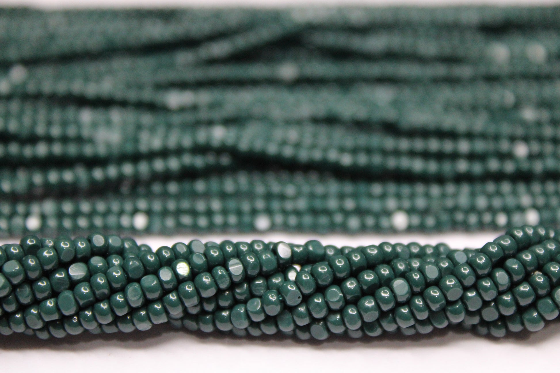 8/0 Charlotte True Cut Beads, Hunter Green Opaque (2 Facets) 1 Strand, Craft Supplies, Jewelry making, Embroidery materials, Vintage beads, 53270