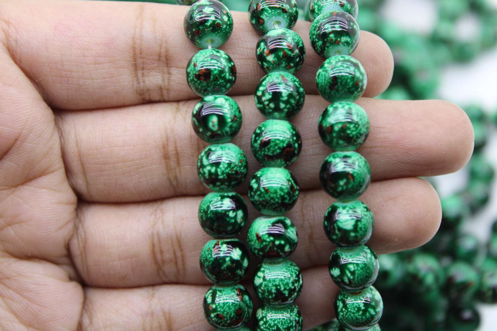 8mm Fancy Glass Beads, Jade Green | High-Quality Beads for Embroidery and Jewelry Making