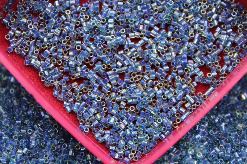 Miyuki Hexagon 2 Cut, 15/0, Blue Lined Aqua AB, Japanese Seed Beads, 10/20/50 Grams, Hex Beads, Miyuki Glass Beads, Embroidery Material, 347/S15