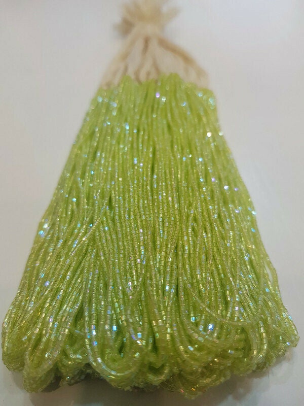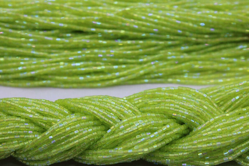 Miyuki Hexagon 2 Cut, 15/0, Bocciolo Green Rainbow Luster, Japanese Beads, 1 Hank, Embroidery Beads, Jewelry Findings, Vintage Beads, Hex Beads