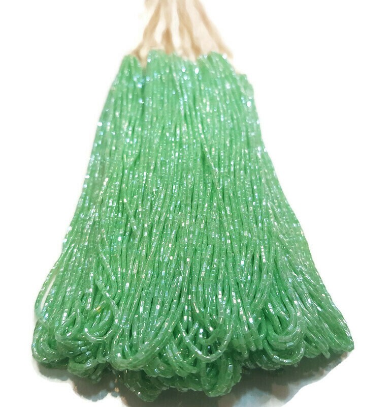 Miyuki Hexagon 2 Cut, 15/0, Dark Mint Green Luster, Japanese Beads, 1 Hank, Embroidery Beads, Jewelry Findings, Vintage Beads